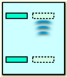 振動源よりパルス的に発せられた波は、上に向かって真直ぐ進んでいきます。決して反射板の移動につられて斜めに進まず、上の反射板が元在った位置に向かって進んで行きます。